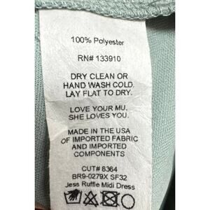 The Jess Ruffle Midi Dress is an easy to wear mock wrap dress that gives you the flattering appearance of a wrap but the security of an elastic waist and sash.