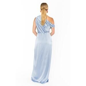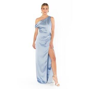 Show Me Your Mumu Jodie Maxi Dress in Steel Blue Luxe Satin L NWT