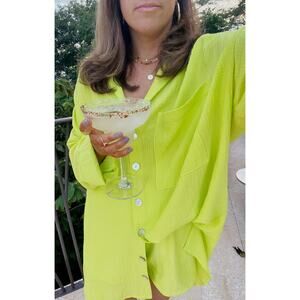 Show Me Your Mumu Johns Button Down Shirt Neon Yellow Crinkle NWT