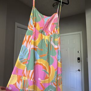 Show Me Your Mumu Julia Maxi Dress in Tropical Fruit Womens S Front Slit Fruit