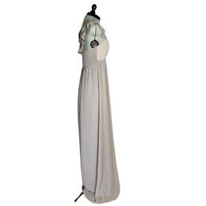 Dove Gray, Ruffle Straps, Smocked Back, Chiffon, Empire Waist. Square/Sweetheart Neckline