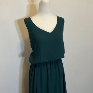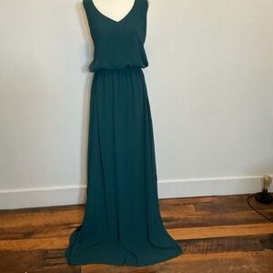 Crafted in a stunning deep teal shade, this flowy maxi dress features a flattering V-neckline, blouson bodice, and floor-length skirt that moves beautifully. The effortless silhouette makes it a favorite for bridesmaid parties, beach weddings, or any occasion that calls for a chic and comfortable look.