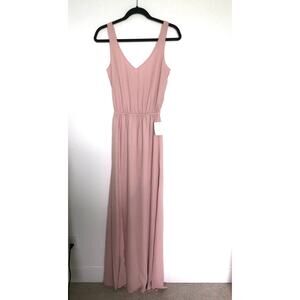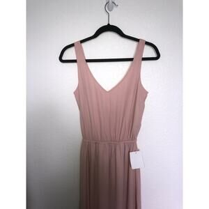 The Kendall Maxi is a romantic and flowy maxi dress. It features a soft v-neck and a low back for a feminine and romantic look. This beautiful dusty blush color is the perfect simple and sophisticated look. It is lined to the ground and has a side slit. It has an elastic waist for comfort and shape. This brand comes long, so it can be tailored to your exact proportions. New with tags.