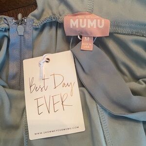 Show Me Your Mumu Kendall maxi NWT Size M Steel blue. Sash included. V neck, low back. Fully lined. Back zipper.