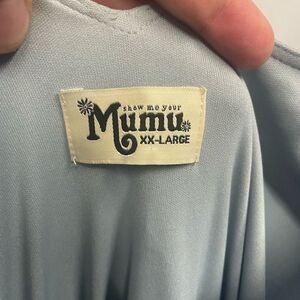 Beautiful baby blue chiffon fabric. Has a small leg slit and a V- back. Comfortable and flattering. Great used condition. Size XX-Large