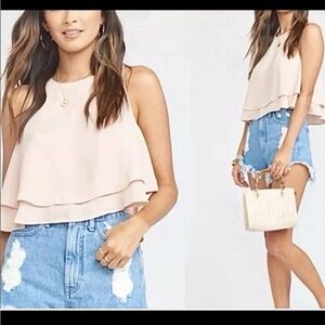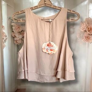 Show Me Your Mumu King Crop Top Pink Flounced Layered SZ L Bridal NWT READ