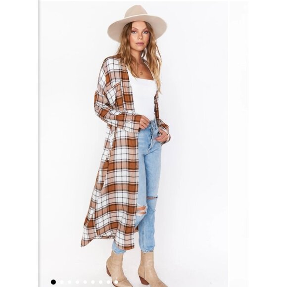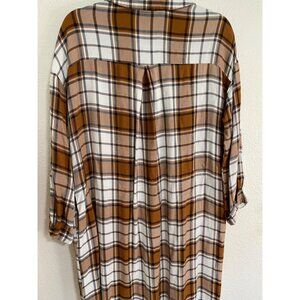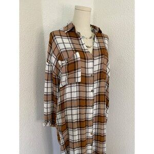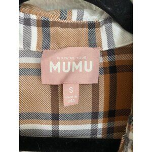Show Me Your Mumu Leo Button Down Long Tunic Dress Size Small Tan/Blue Plaid