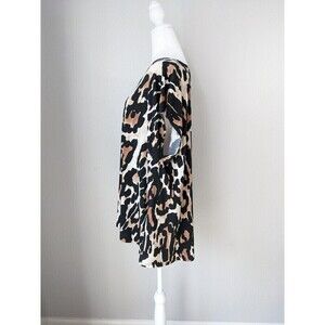 This leopard print tunic blouse from Show Me Your Mumu is a versatile addition to any wardrobe. It features a scoop neckline, cap sleeves, and a pullover closure. The comfortable and stretchy polyester blend material features a multicolor animal print pattern.