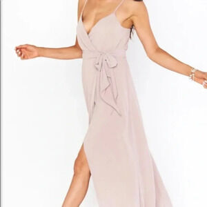 Show Me Your Mumu Liz Tie Maxi Dress Soft Beige Chiffon Blush Size S