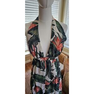 Beautiful tropical style halter dress in excellent condition and comes from a clean and smoke free home. This dress has the perfect amount of stretch and is very flattering.