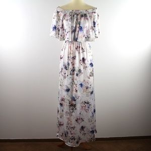 Show Me Your Mumu Maxi Dress White Floral Print Off Shoulder M