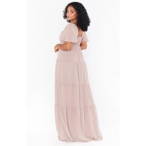 A winning combination of all our bestselling moments, this flattering maxi has a sweetheart neckline with a smocked back to ensure a perfect fit on your bust. Flutter sleeves offer dainty coverage and a tiered skirt adds the ultimate boho flow! The empire waist makes this a great maxi dress for moms to be! So whether you're a bridesmaid or a momma with a special event to attend, the Nicole will take care of you. Chiffon - 100% Polyester Lined Smocked back panel Bra friendly! Maternity friendly! Colors may photograph differently under studio lighting BR1-0454N BG24Size: Womens XS Dress was purchased from SMYM through liquidation and is authentic, unaltered, unworn, and new (with or without tags) unless otherwise indicated above. May arrive wrinkled and need steaming prior to event. Pet free and smoke free environment. Shipped daily Monday-Saturday from Washington State. Keywords: Wedding, Bride, Bridesmaid, Bridal, Prom, Formal