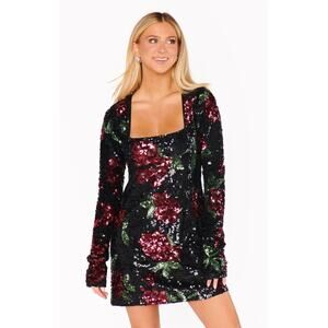 Show Me Your Mumu Out Tonight Mini Dress Send Me Roses Black Sequins S NWT