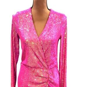 Hot girl holiday in this pink sequin mini dress! Long sleeves and ruched in all the right places, this cool girl moment will have you the center of any party this season.