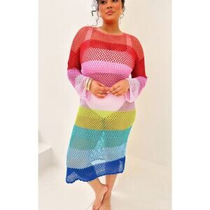 Show Me Your Mumu Paula Maxi swim Coverup Dress Multi Stripe Crochet