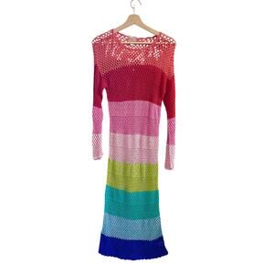 Show Me Your Mumu Paula Maxi Swim Coverup Dress Multi Stripe Crochet XS