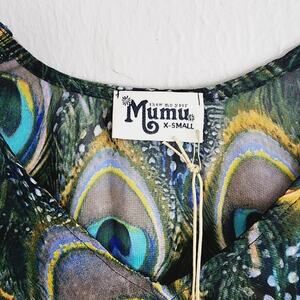 This is a NWT (New With Tags) Show Me Your Mumu Peta Tunic in a Women's Size XSmall (XS). This gorgeous top features a vibrant green and blue peacock feather print and a flattering V-neckline.