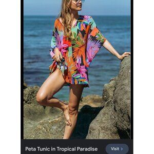 Peta is a Mu classic! This crowd favorite has been around since the beginning. This vibrant palm printed tunic can be thrown over a bikini, and worn with little shorts, leggings, or jeans. Oversized and unbelievably comfy, but so flattering and glamorous all at the same time.