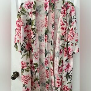 Embrace elegance with this floral kimono robe. Featuring a beautiful pink and white design, it's perfect for lounging in style.