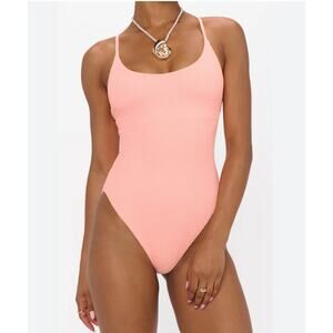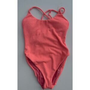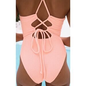 * Tags: show me your mumu,coral pink swimsuit,textured swimwear,one piece swimsuit,criss cross back