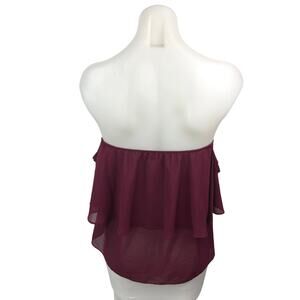 Show Me Your Mumu Purple Chiffon Strapless Ruffles Tube Shirt Blouse Top Size M