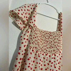 Show Me Your Mumu Red Floral Square Neck Fit Flare Mini Dress Womens Size Large