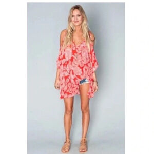 Show Me Your Mumu Red peta boo Aquarius Paisley printed tunic top with open shoulders.