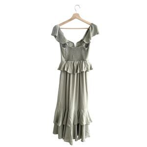Show Me Your Mumu Reese Ruffle Dress Moss Green Crisp XS
