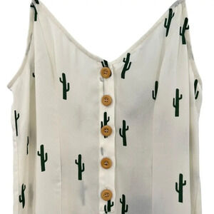 Show Me Your Mumu Remy Romper White Green Cactus Print Button Size Small