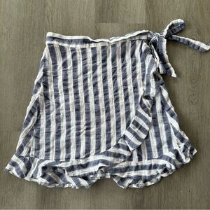 Women’s size small Show Me Your Mumu Roam Ruffle skirt. Blue and white stripes. Wrap style, ties on the side. Great condition!
