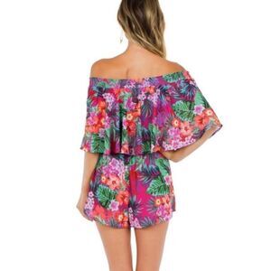 Show Me Your Mumu Rosarita Off The Shoulder Romper Pink Tropical