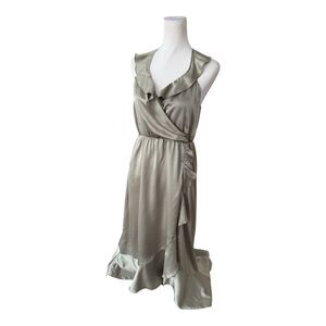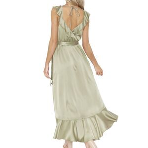Show Me Your Mumu Samantha Ruffle Green Wrap Prom Maxi Satin Bridesmaid Dress L