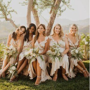 Show Me Your Mumu Samantha Ruffle Wrap Dress ~ Champagne Luxe Satin 1X