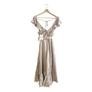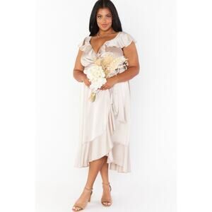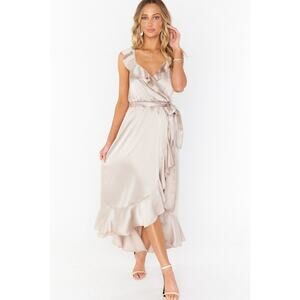 Show Me Your Mumu Samantha Ruffle Wrap Dress Show Me The Ring Luxe Satin M NWT