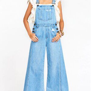 Show Me Your Mumu San Fran Flare Distressed Denim Overalls (Sz M)