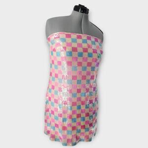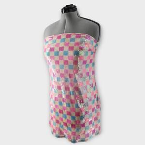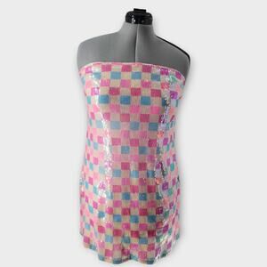 Show Me Your Mumu Sequin Mini Dress Women's XL Strapless Stretch Barbiecore