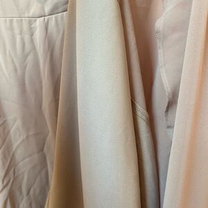 Show stopper in this sweet and structured yet flowy, maxi dress. A dainty one shoulder and a slit accent the femininity while clean lines make it a timeless silhouette. A gorgeous option for a bridesmaid dress or formal events. Color is taupe or deep/dusty champagne - please see all photos. Color is great for a fall/autumn or winter wedding! Even spring, as it's a soft neutral.