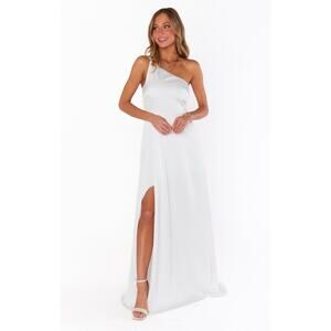 Show Me Your Mumu Shannon One Shoulder Dress in Ivory Luxe Satin S NWT