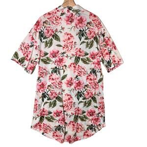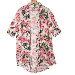 Show Me Your Mumu Short Sleeve Floral Open Front Cardigan Longline Coverup Pink. 100% polyester