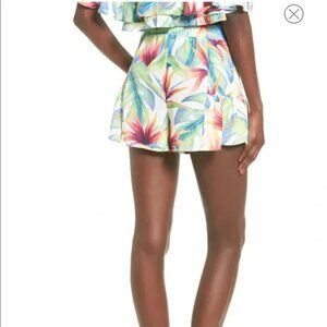 Gorgeous flouncy floral shorts from Show Me Your Mumu! These are the Skippy Shorts in the Palm Flings print. Primed for happy hour drinks by the sand, these tailored shorts have pretty ruffles and perfectly placed front pleats. Size Large and in excellent preowned condition; no visible flaws.