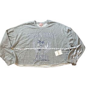 Vintage inspired sweats - yes please! This raw hem cropped Golden Coast Graphic sweatshirt is the perfect length - not too short, not too long.