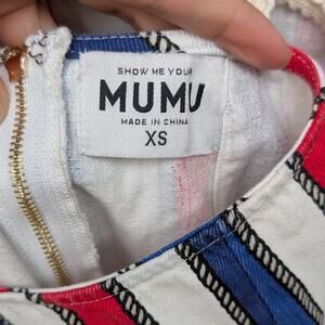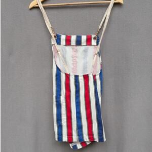 Show Me Your Mumu Striped Trude Romper Denim Short Overalls, size XS