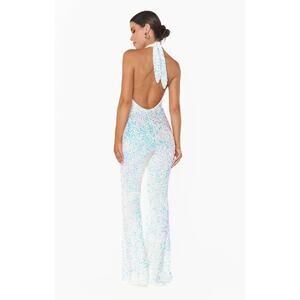 Show Me Your Mumu Studio Halter Jumpsuit in White Sparkle Sequin M
