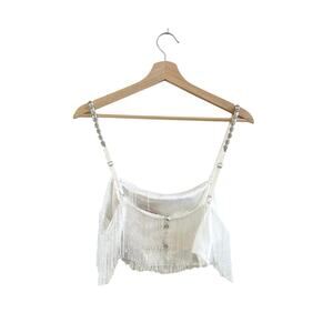 Show Me Your Mumu Swift Fringe Top in White Beaded Fringe L