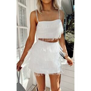 Made for bachelorette weekends! The Swift Fringe Top is a cute crop with beaded detailing.
