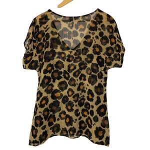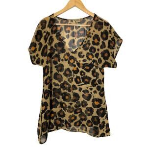 Show Me Your Mumu Top Leopard Print Sheer Short Sleeve V-Neck Brown Black Tan S