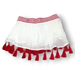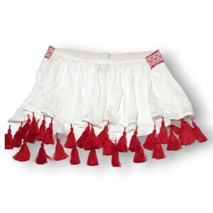 Show Me Your Mumu Top Womens XS Flutter Crop Strapless Tube Embroidered Tassels