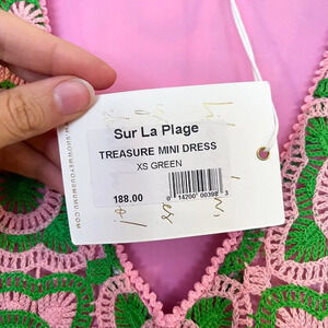 Show Me Your Mumu Treasure Green Pink Crochet Bell Sleeve Mini Dress XS NWT