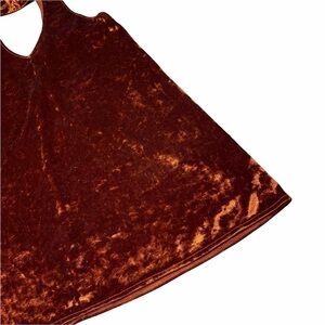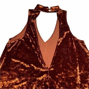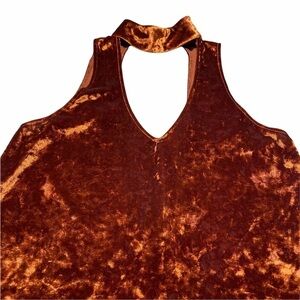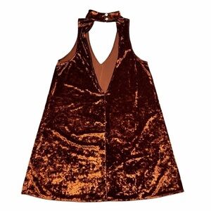 •Show Me Your Mumu •SMYM •Crushed Velvet •Orange •High Neckline •Sleeveless •Friday Choker Dress •Neck Button Enclosure •Back Cutout •Mini Dress •Fall •Halloween