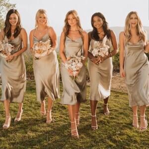 Show Me Your Mumu Verona Cowl Dress Moss Green Luxe Satin XXL Midi Bridesmaid